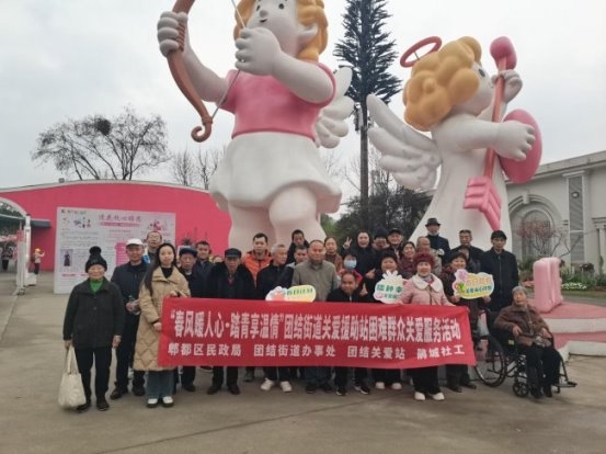 2026年3月13日,团结街道关爱站精心组织“春风暖人心・踏青享温情”困难群众关爱服务主题活动,组织32名长期出行受限的特殊群体走出家门、走进新都区漫花庄园,在社工全程专业陪伴下,完成一场从物理空间到心灵世界的系统性疗愈之旅,以专业力量激活生命活力、重建社会连接、传递城市温情。