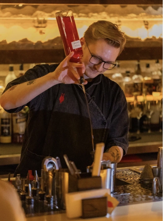 品鉴环节成为当晚的高潮。由专业调酒师现场调制的多款汾酒专属鸡尾酒逐一亮相,每一款都融合了汾酒的清香基底与创新元素,或加入新鲜果汁增添果香,或以独特装饰呈现视觉美感,风味独特,造型别致。嘉宾们手持鸡尾酒杯,或驻足于调酒台前欣赏调制过程,或与朋友举杯共饮,探讨酒体风味的层次变化。